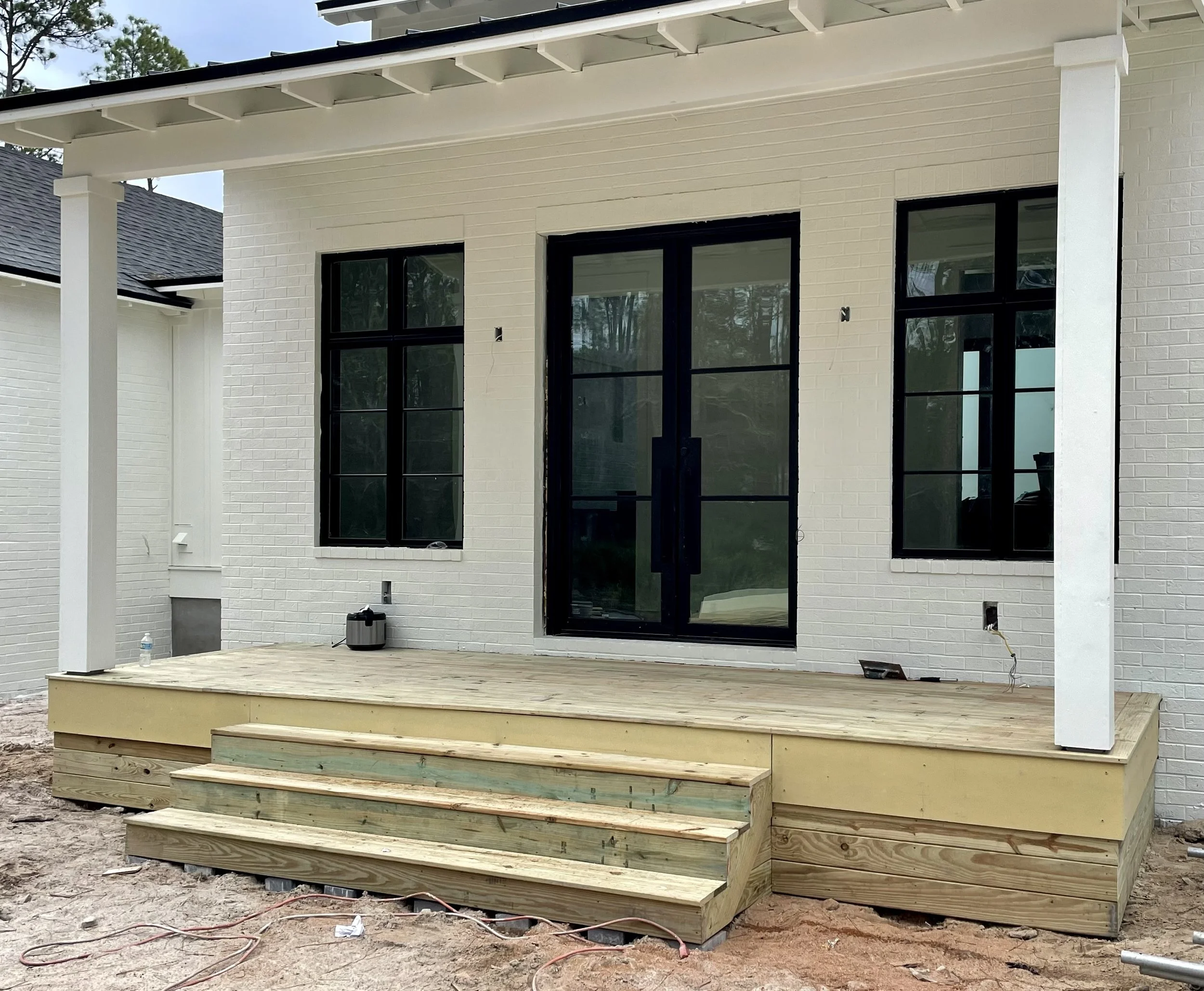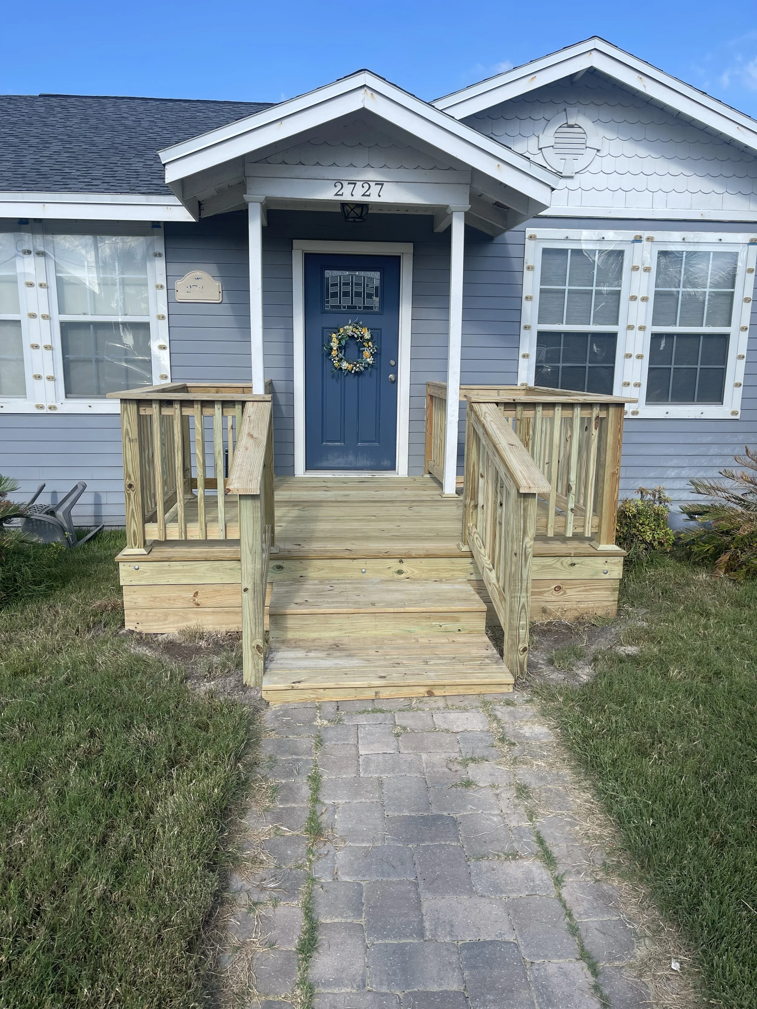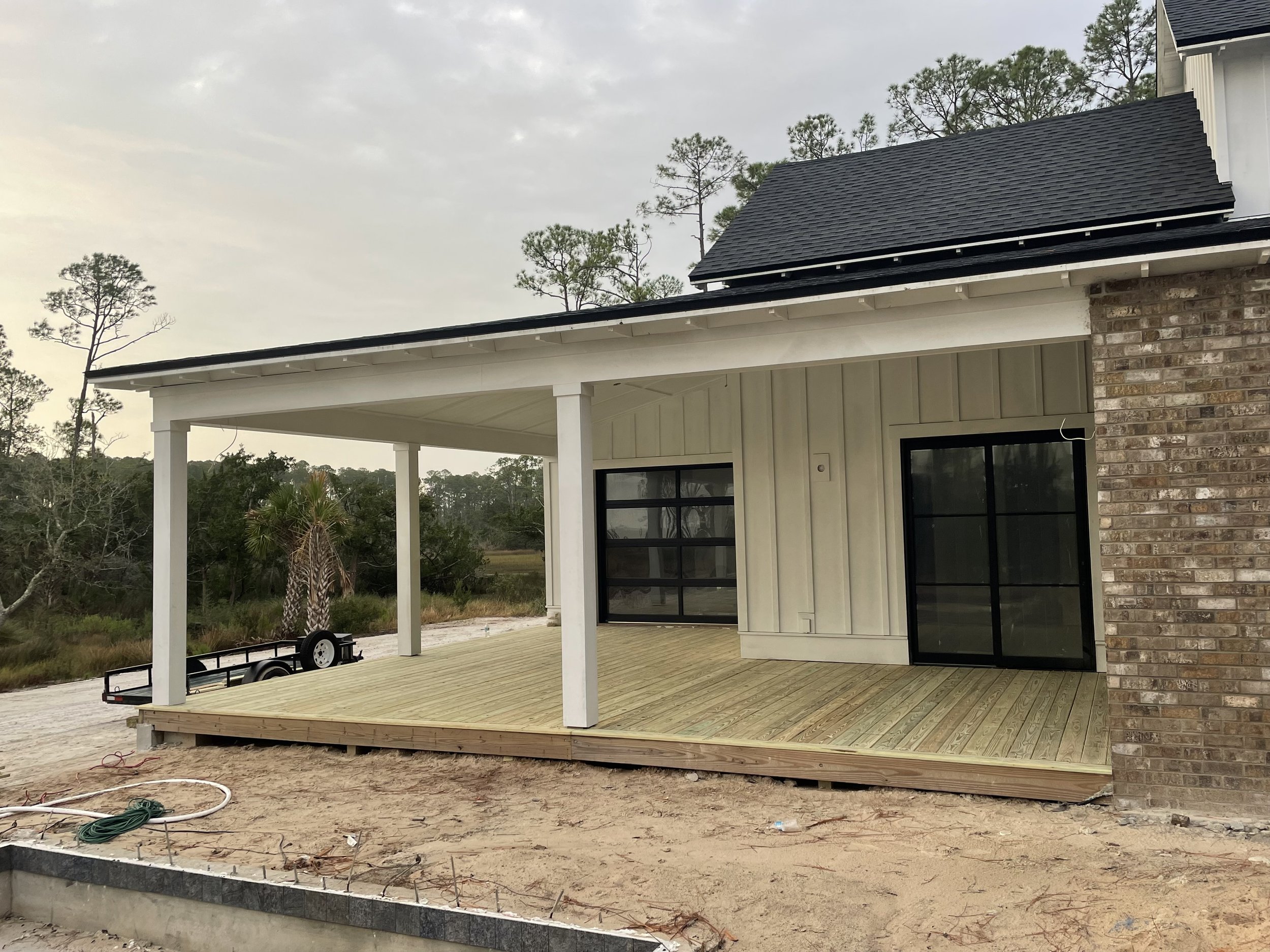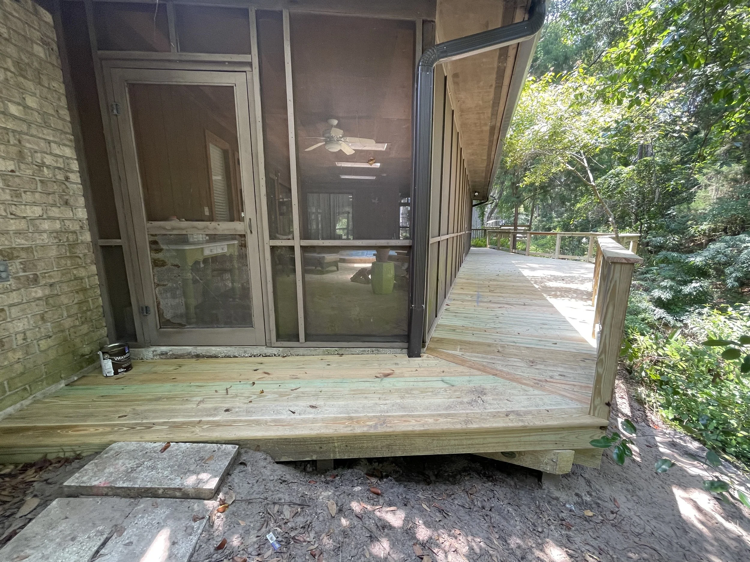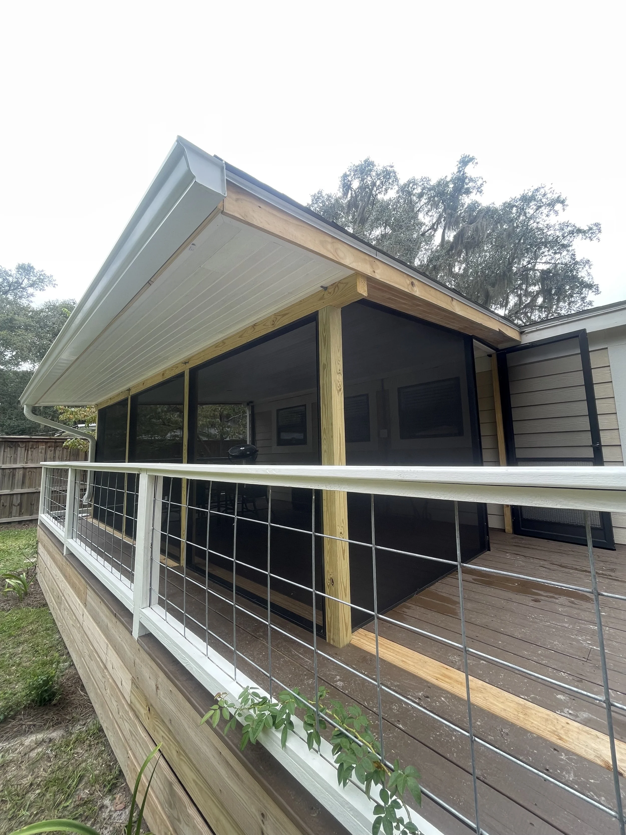 Custom 700 sq ft Timbertech Deck addition including an 18' arc (9' Radius). Including some custom box steps, dry bar, skirting, and planter