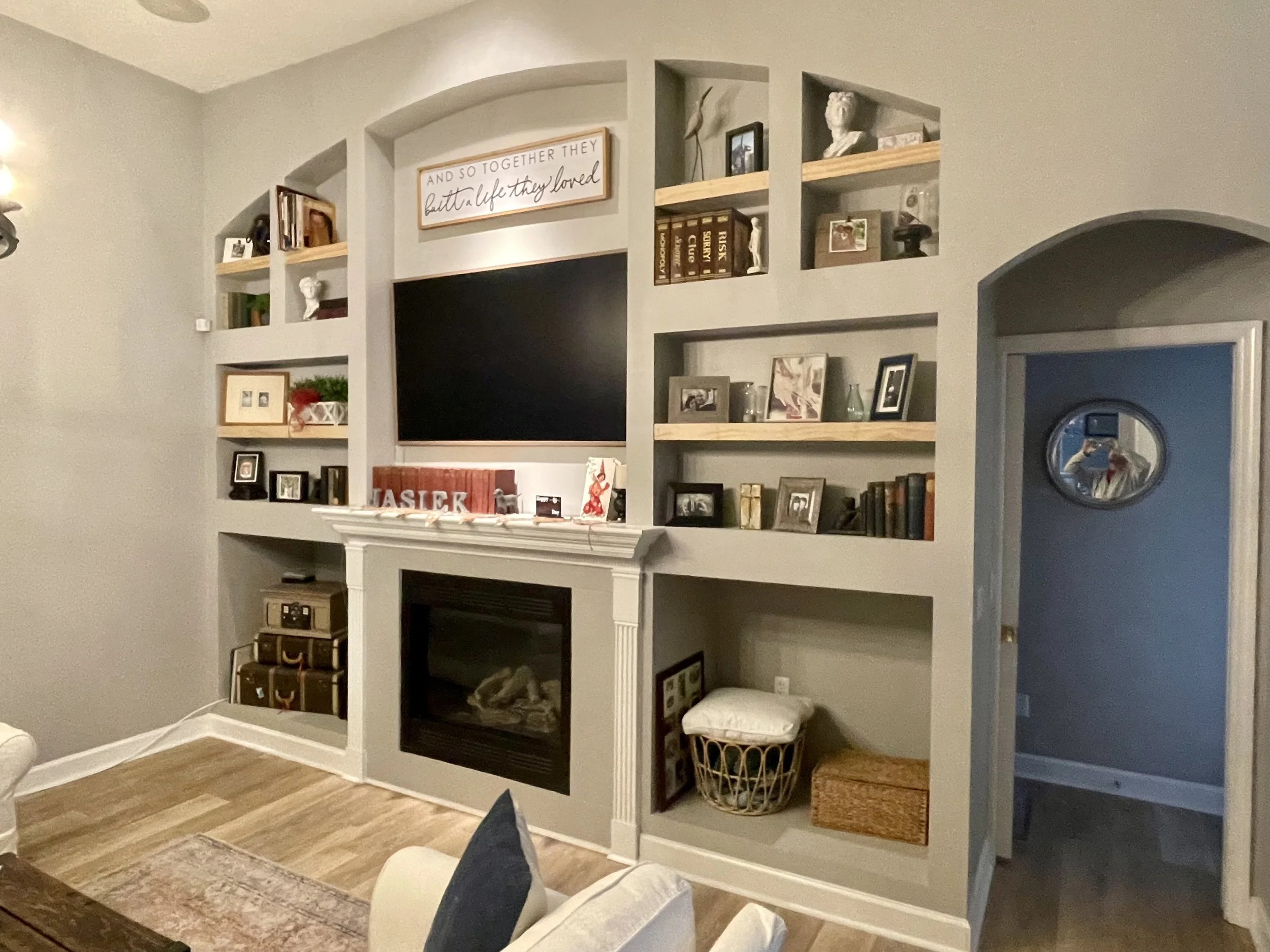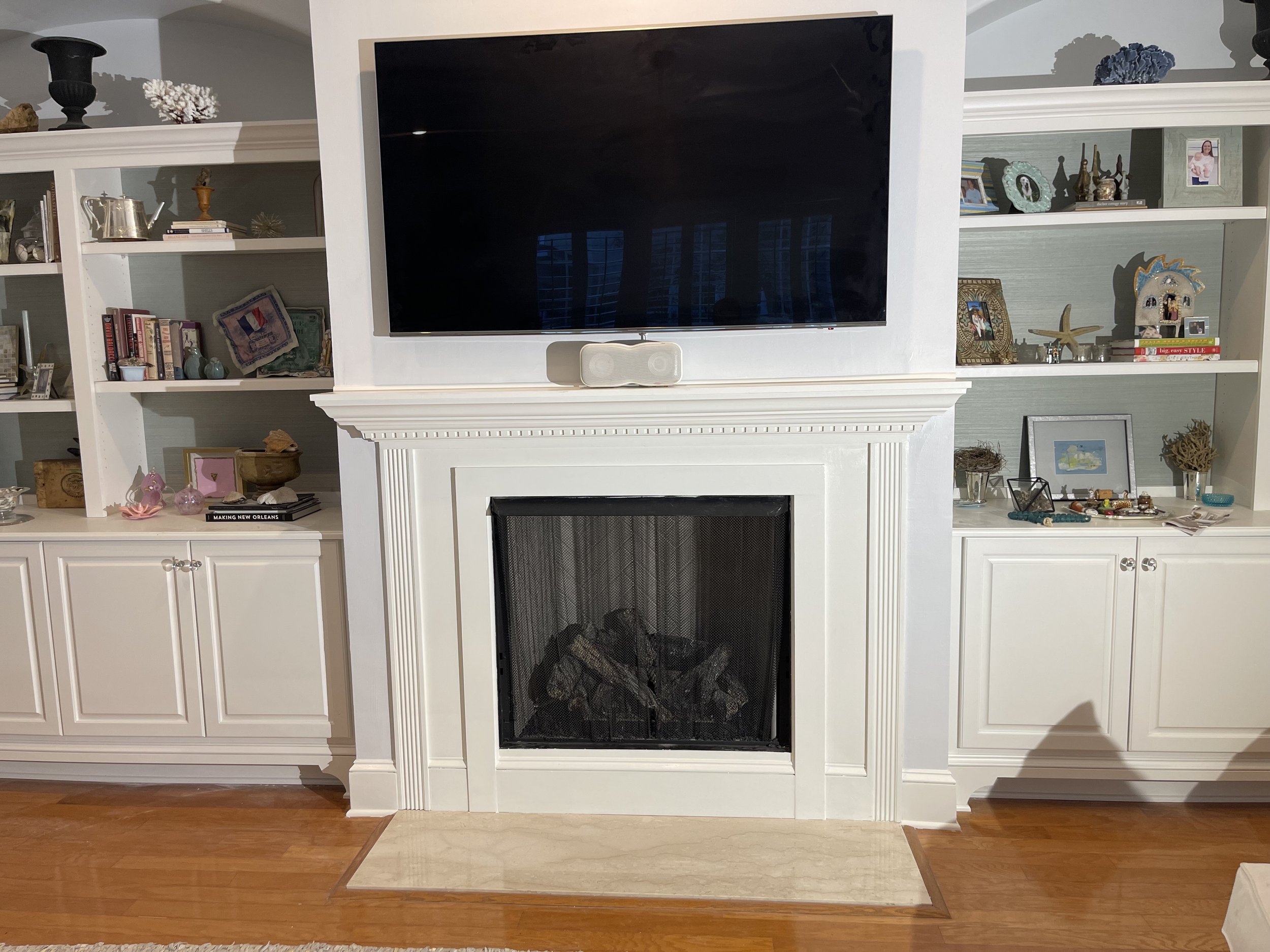 Renovated Custom Fireplace Mantle, Trim, and Paint.